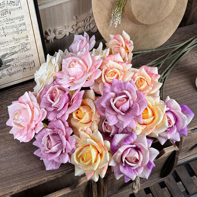 Decorazione da sposa con tre teste in rilievo di rosa materiale floreale sfondo murale simulazione di fiori casa decorazione morbida rosa prodotto finito